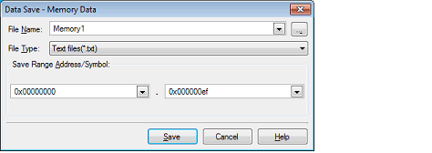 Specify the "start address" and "end addresses" to set a range of memory to be saved in a file.