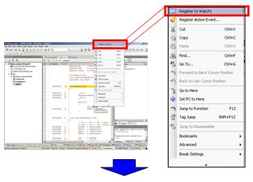 While wait is selected, right-click the mouse and select [Register to Watch1] from the menu. |