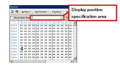 By specifying an address in display position specification area, it is possible to specify the display start position of memory values.