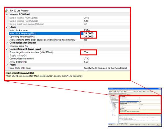 Select [Property] from [RX E2 Lite (Debug Tool)] in the Project Tree.
