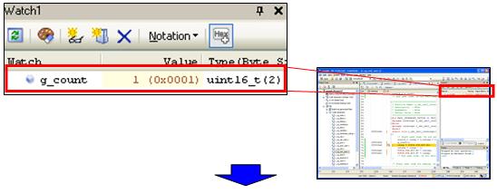 See the Watch panel and confirm that the value of [g_count] is counted up to 1.