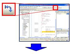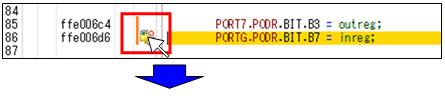 Cancel the break point which was set in "Setting Break point". Left-clicking the break mark on the line where the break is set cancels the break point (the break mark disappears and the column becomes empty).