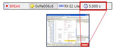 Since the g_count value is incremented every 0.5 seconds, execution time of the program should be five seconds. Execution time measured is displayed in the status bar.