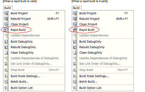 To enable/disable a rapid build, select [Rapid Build] from the [Build] menu. A rapid build is enabled by default.