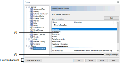 Figure A.54 | Option Dialog Box ([Other - User Information] Category) |