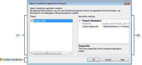 If any of the check boxes is selected, the project is set as a constituent application project, and dependence relations between the projects are assumed.