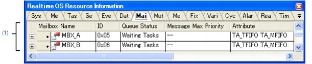 - From the [View] menu, select [Realtime OS] >> [Resource Information].