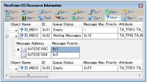 Remark Double-clicking a waiting-message information cell (such as Message Address or Message priority) displays the contents of the message in the Memory panel and moves the caret to the relevant location.