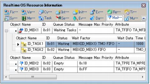 - From the [View] menu, select [Realtime OS] >> [Resource Information].