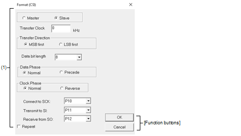 This dialog box is used to specify the serial format for the 3-wire serial interface (CSI).