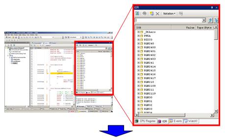 In this section, you observe the value of the register that implements peripheral functions built in the microcontroller. First, let's make the panel float so that it is easier to view.