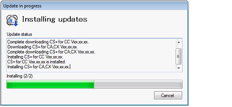 Update items are downloaded, and then the are installed. A progress bar on the Update in progress dialog box displays the download and install progress.