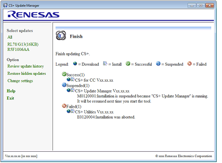 See "2.5 Displaying the update history" for instructions on installing download update items later. |