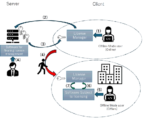 A floating license cannot be used unless the computer is connected to the server. Offline mode is a mechanism that occupies the license for a certain period in order to use the license in a state after disconnection from the network environment.