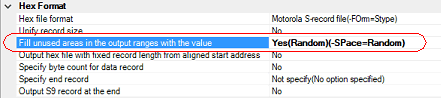 Select [Yes(Random)(-SPace=Random)] in the [Fill unused areas in the output ranges with the value] property in the [Hex Format] category.