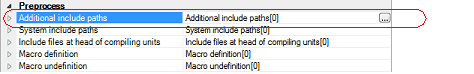 The include path setting is made with the [Additional include paths] property in the [Preprocess] category.