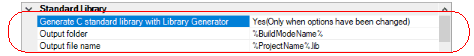 Select the build tool node on the project tree and select the [Standard Library Generate Options] tab on the Property panel.