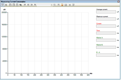 After the facility for measuring current consumption is enabled, measurement proceeds during normal execution of the debugger initiated by, for example, clicking on