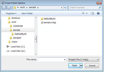 In the dialog box, select the target project file for importing the build options and click the [Open] button.