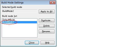 Select [Build Mode Settings...] from the [Build] menu. The Build Mode Settings dialog box will open.