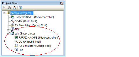 You can create a subproject with CC-RL as the build tool by reusing the file structure of a subproject with CA78K0R or CA78K0 as the build tool (See "CS+ Integrated Development Environment User’s Manual: Build Tool Operation" for details). |