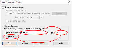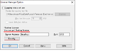 Enter the IP address (example: 192.168.0.1) or host name (example: license.example.com) of the license server into [Server Address] and the port number specified by the license server administrator into [Port]. If you do not know, please contact the license server administrator.
