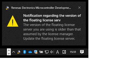 icon indicates mismatches between versions registered with the license manager and the floating license server.