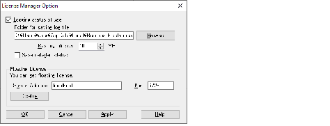 If this checkbox is selected, the states of usage of the licenses are recorded in a log file. If this checkbox is not selected, a log file is not saved.