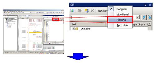 In this section, you observe the value of the register that implements peripheral functions built in the microcontroller. First, let's make the panel float so that it is easier to view.
