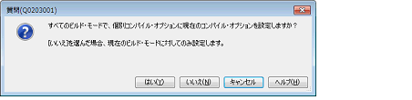 [ビルド]カテゴリの[個別コンパイル・オプションを設定する]プロパティで[はい]を選択すると,メッセージ ダイアログがオープンします。