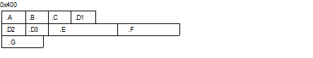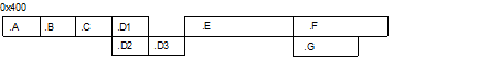 - | “:”で区切った直後のセクション(この例の場合は.A,.D2,.G)を先頭として,それぞれの先頭が同一アドレスに割り付きます。 |