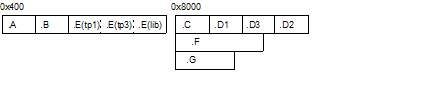 - | -start=.A,.B,.C,(.D1:.D2,.D3),.E,(.F:.G)/400オプションを指定した場合 |