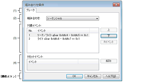 なお,[組み合わせ]エリアにおいて[シーケンシャル]を選択した場合,リストの上から順に番号が付与され,この番号が条件成立の順序となります。