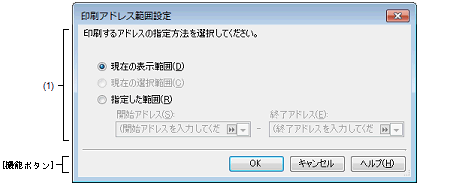 印刷の対象となるアドレス範囲を[開始アドレス]と[終了アドレス]で指定します。
