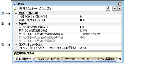 なお,このプロパティは,[シミュレータ・コンフィギュレーション・ファイルを使用する]プロパティにおいて[はい]を選択した場合のみ表示されます。