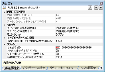 動作環境設定【EZ Emulator】(プロパティ パネルの例)