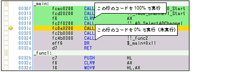 図 2.134 | コード・カバレッジ測定結果の表示例(逆アセンブル パネル) |