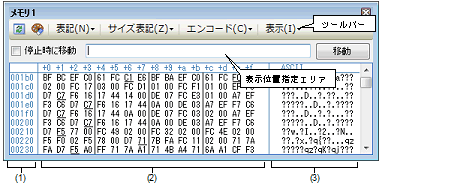 なお,各エリアの見方,および機能についての詳細は,メモリ パネルの項を参照してください。