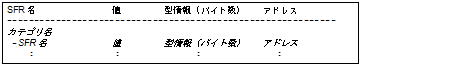 [ファイル]メニュー→[名前を付けてSFRデータを保存...]を選択することにより,名前を付けて保存 ダイアログをオープンし,SFRのすべての内容をテキスト・ファイル(*.txt)/CSVファイル(*.csv)に保存することができます(このパネル上での表示/非表示の設定に関わらず,すべてのSFRの値が対象となります)。