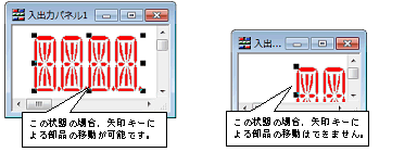 ただし,ウインドウを縮小し選択部品を半分以上隠した状態では,矢印キーでの選択部品の移動はできません。