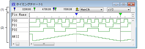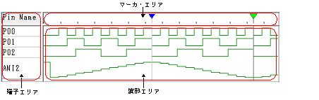 プログラムを実行することにより,選択した端子の波形がタイミング・チャート形式で表示されます。