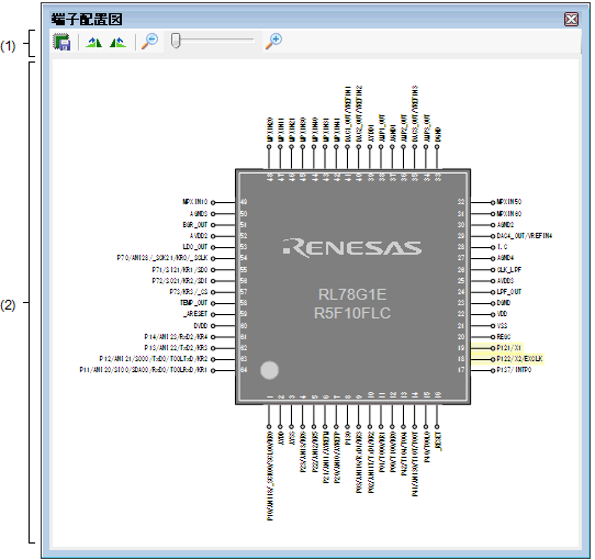プロジェクト・ツリー パネルの[Project name(プロジェクト)]→[コード生成(設計ツール)]→[端子図]→[端子配置図]を選択したのち,[Enter]キーを押下 |