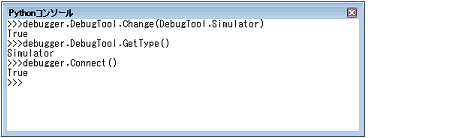 パネル上でPython関数や制御文を実行することにより,CS+,およびデバッグ・ツールを操作することができます。