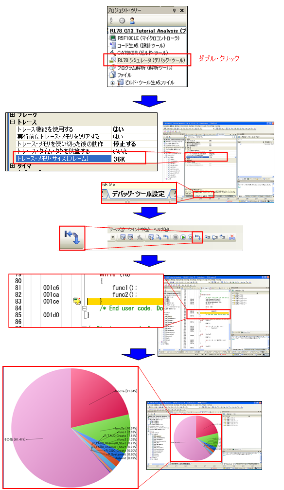 実行時間の割合を表示する解析グラフは,トレース・データ(CPUの実行履歴)を元に描画されます。