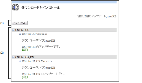 このページでは,選択されたアップデートが一覧表示され,ダウンロードとインストールを開始します。