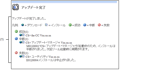 このページでは,アップデートの結果が成功,中断,失敗ごとに一覧表示されます。
