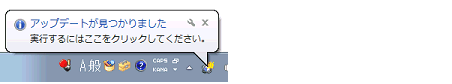 を表示します。見つかったアップデート対象の中に,今回の自動確認で初めて見つかったアップデート対象が含まれている場合は,次のようなバルーンヘルプを表示します。