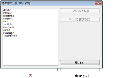 分割パネルとしてメイン・ウインドウに表示しているパネルの内,アクティブにするパネル,もしくは閉じるパネルを選択します。