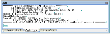 ビルドの実行結果(ビルド/リビルド/バッチ・ビルドの場合)