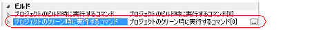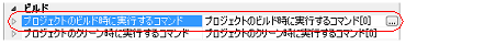 ビルド時(E.5.1 ビルドを実行する」参照)に実行するコマンドを,[プロジェクトのビルド時に実行するコマンド]プロパティで設定します。